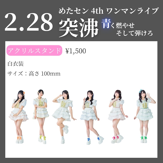 ワンマンライブオフィシャルグッズ 「アクリルスタンド」1,500円 ・サイズ 高さ100mm(メンバー毎に誤差あり) ※在庫無くなり次第終了 ※受注商品と同一会計でご購入の場合、一番発送が遅い商品に合わせて発送いたしますので予めご了承ください。