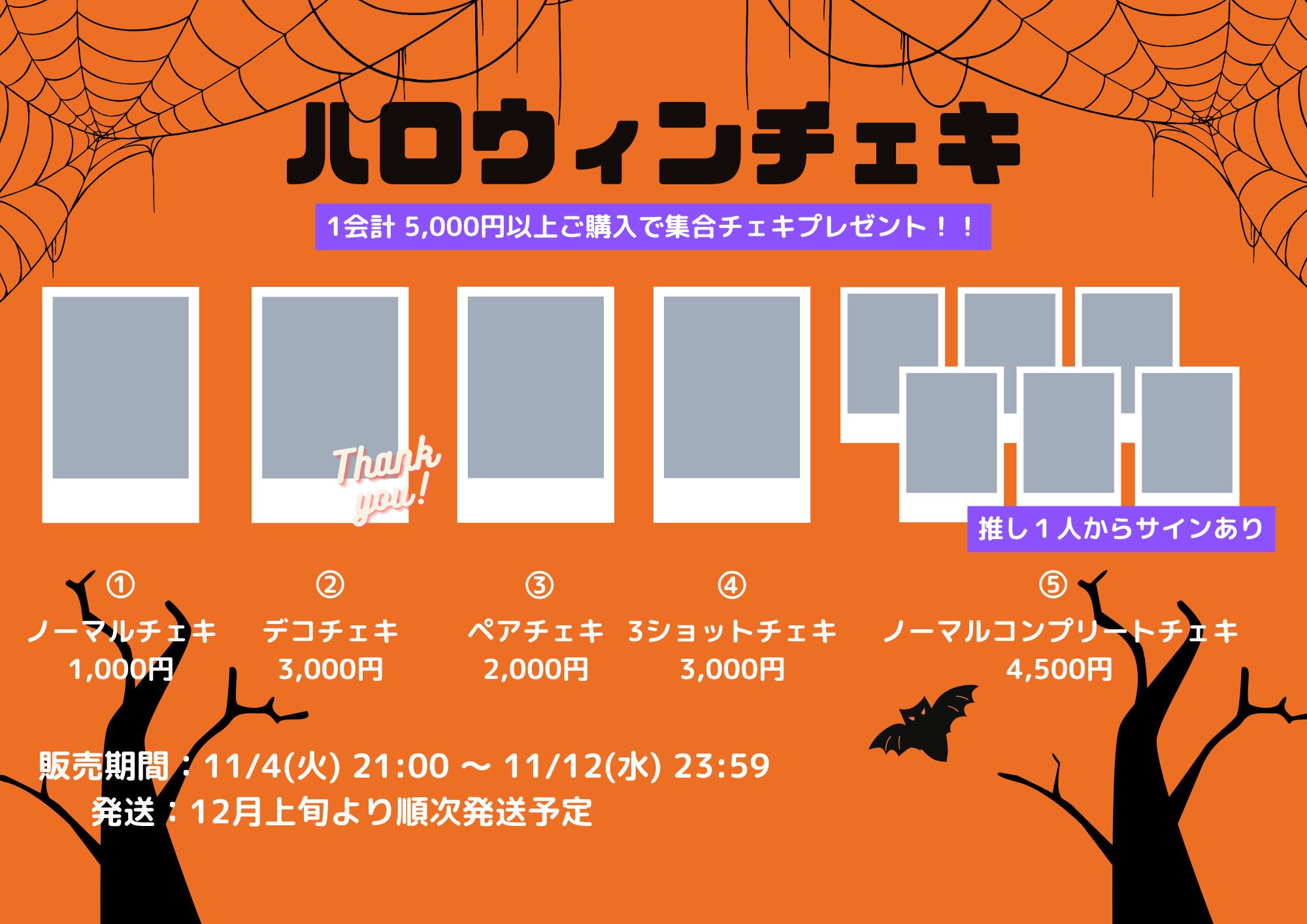 ハロウィンチェキを1会計5,000円以上(送料別)購入で集合チェキプレゼント